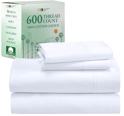 California Design Den’s 600-thread count sheets are crafted from 100% pure cotton. The sateen weave adds a silky and smooth texture but remains breathable and moisture-wicking to keep you cool.