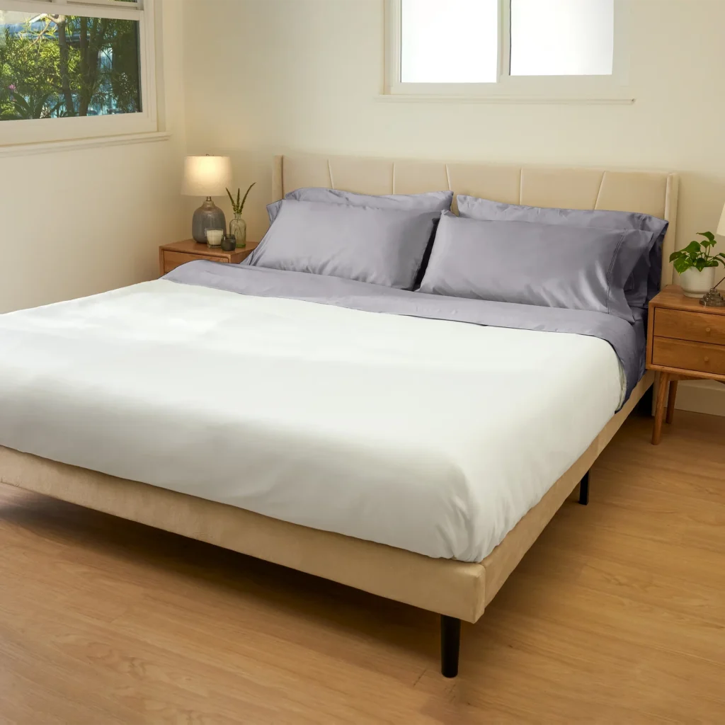 Sleepgram’s Bamboo Sheets are crafted from 100% organic bamboo fibers, offering a luxurious softness that rivals silk (without the cost). The 400-thread-count sateen weave gives them their silky texture and promotes a more comfortable night’s sleep. Plus, the fibers are long-staple, which increases the sheets’ strength and prevents tears or pilling.